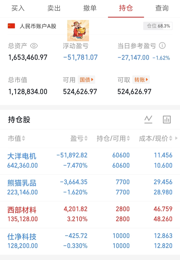 今日持仓坚定守局,仕净科技、熊猫乳品、大洋电机、西部材料全程持股未动,不慌不躁静待花开,耐心熬出主升涨势!