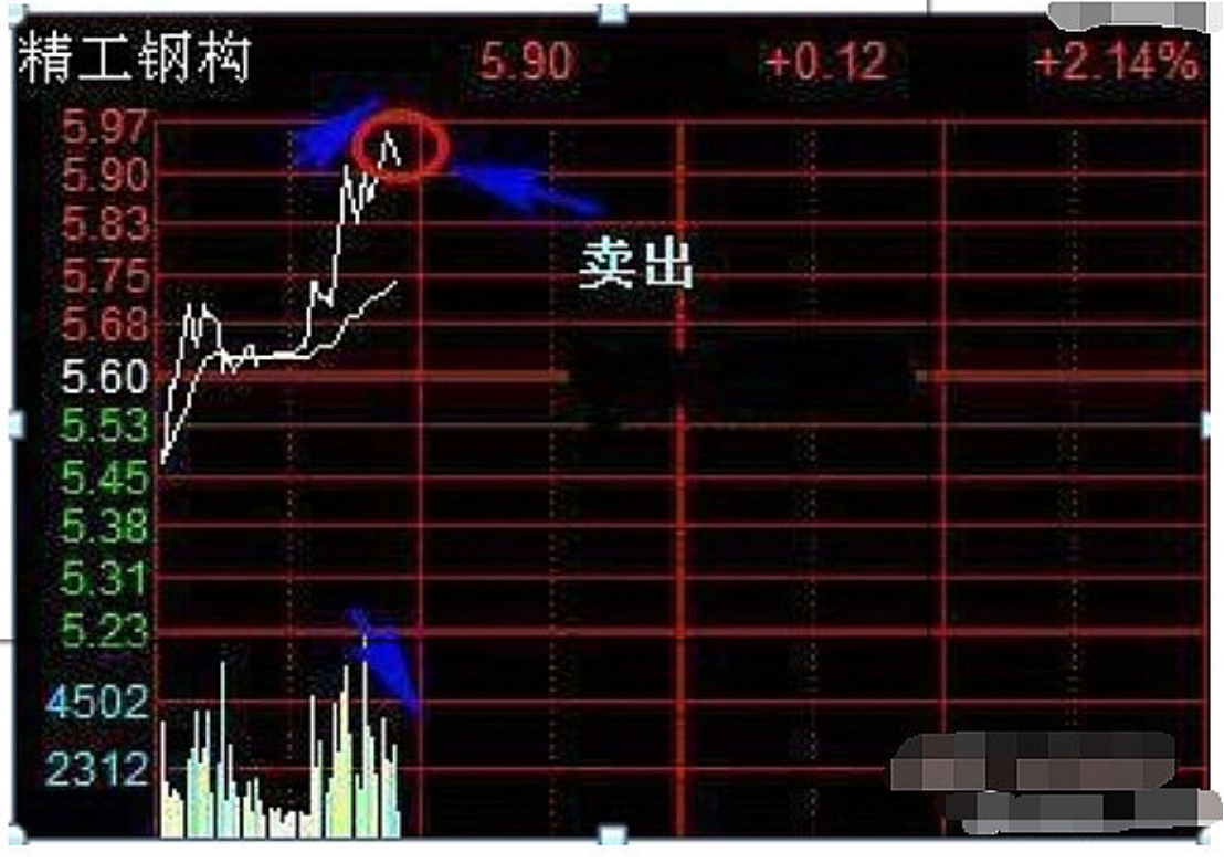 5、快速拉升,量能没有持续放大,而且均价线没跟上,调头一刻是卖点;