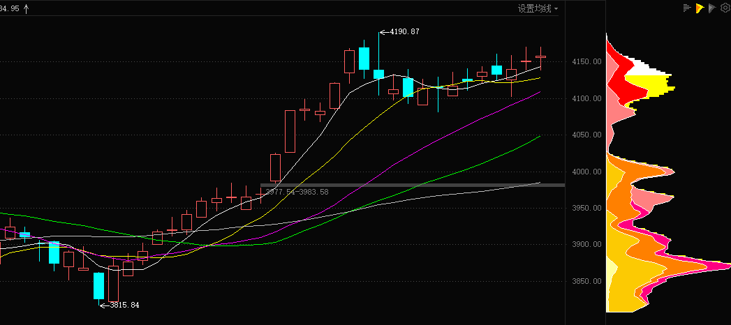 大盘分析:昨日市场呈现明显的指数与个股分化格局:代表权重股的沪指白色均线表现强势,全程被紫金强力支撑,盘尾更是精准冲高至4170点附近反压位,该位置恰为前日市场最高点,使得昨日市场的最高与最低点位与前日完全一致,凸显出当前市场的高度控盘特征。与之形成鲜明对比的是,代表多数小盘股的黄色均线冲高后震荡回落,整体表现疲弱,未能跟上指数节奏。这种白线强、黄线弱的走势,本质是权重护盘下的指数行情,一定程度上掩盖了多数个股表现疲软的真实盘面状态。在当前高度控盘的市场环境下,单纯依据指数走势来制定交易策略并不靠谱极易陷入误判。因此当前行情下需重点聚焦黄线表现与两市涨跌家数分布:指数走势存在一定迷惑性,市场的真实赚钱效应与温度,更需通过黄线相对位置及涨跌个股数量对比来判断。若黄线持续处于低迷状态,且下跌个股数量长期显著多于上涨家数例如下跌个股数量长期维持在 4000 家以上,即便指数收红也仅建议追求短线小级别机会的股友们谨慎参与;对于等待更大级别趋势性机会的股友们而言,可暂时无视此类结构性小机会,保持观望耐心等待更明确的市场信号。