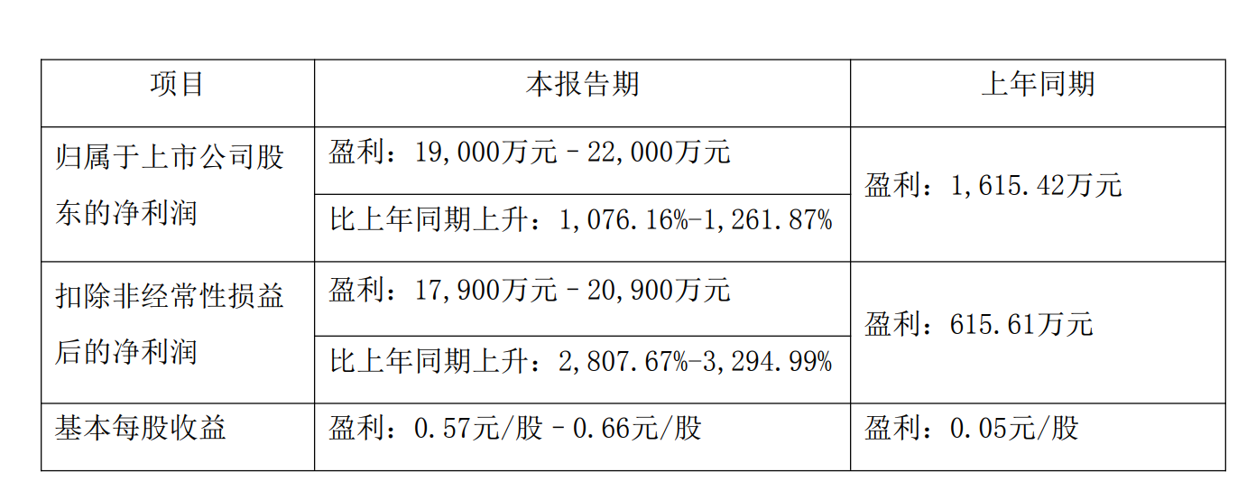 苏利股份,净利增1852%到2128%,达到1.90亿到2.20亿