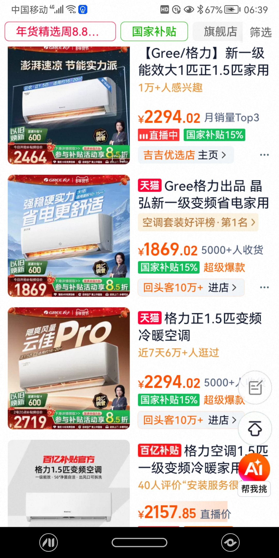 淘宝天猫格力电器空调同样火爆,销量杠杠的