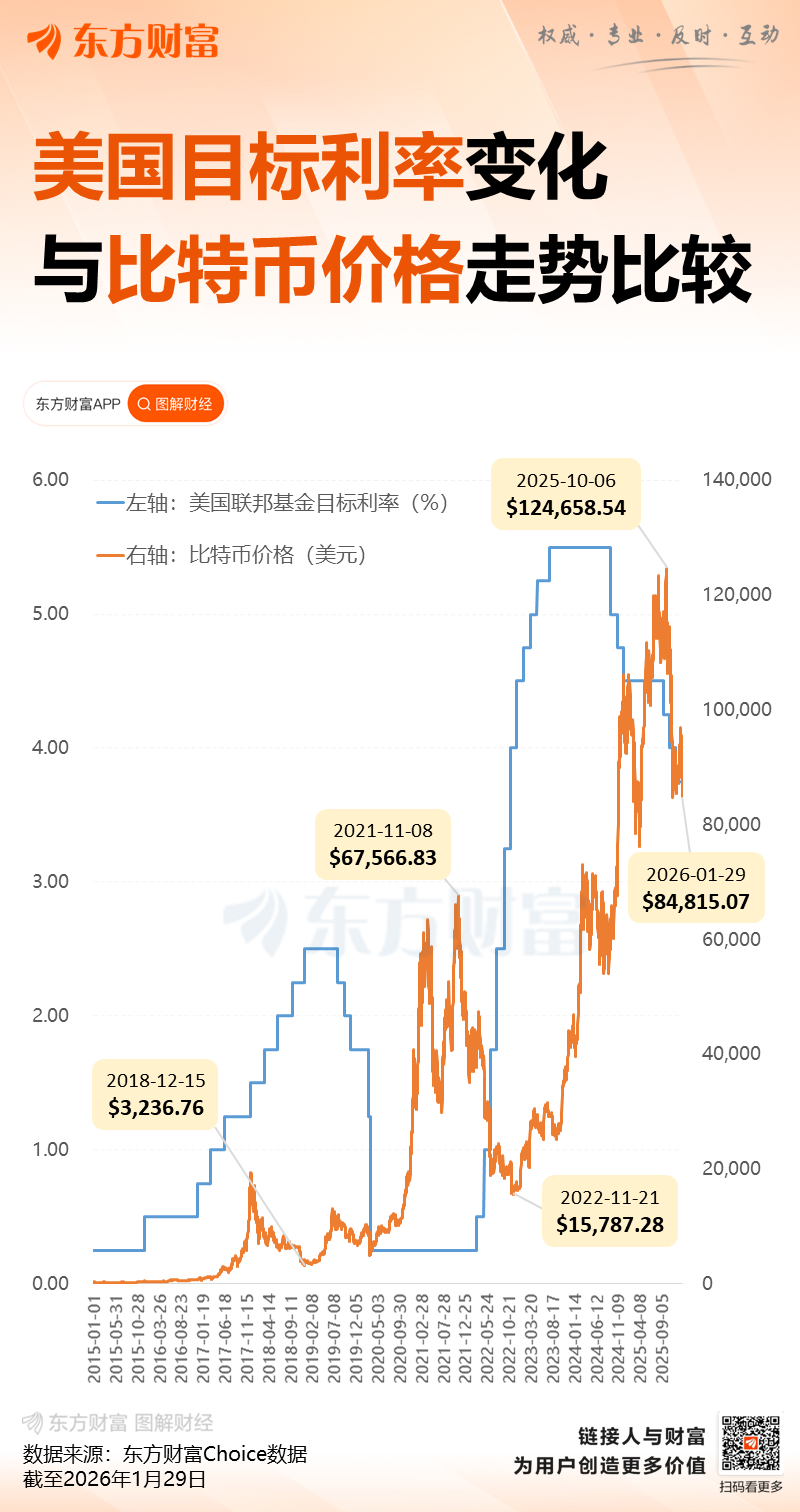 比特币近期显得力不从心。尽管美元走软曾促使交易员将资金从加密货币转投黄金和白银以进行宏观对冲,但目前比特币正伴随贵金属同步下挫,身陷全面避险抛售潮,进一步凸显其高风险资产的属性。