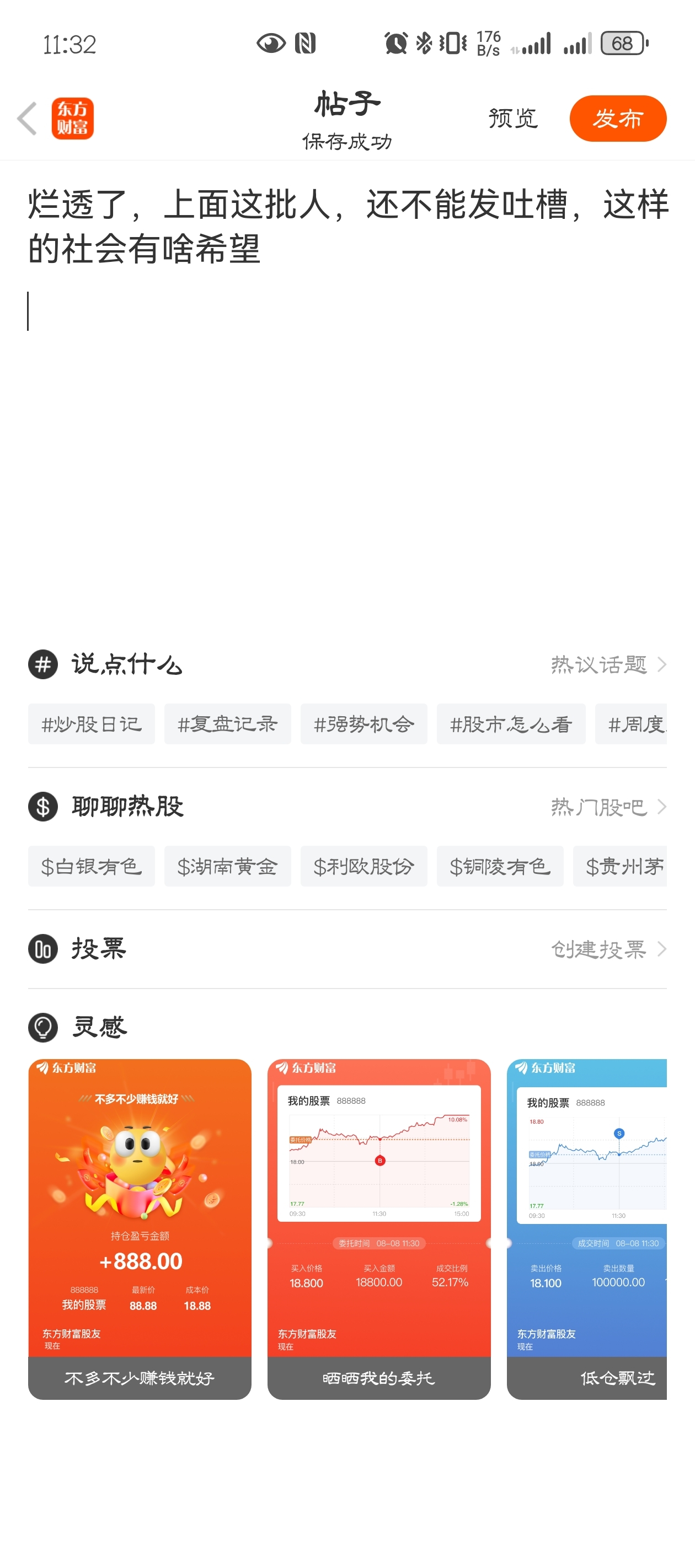 温馨提示: 1.根据《证券法》规定,禁止编造、传播虚假信息或者误导性信息,扰乱证券市场;2.用户在本社区发表的所有资料、言论等仅代表个人观点,与本网站立场无关,不对您构成任何投资建议。用户应基于自己的独立判断,自行决定证券投资并承担相应风险。《东方财富社区管理规定》