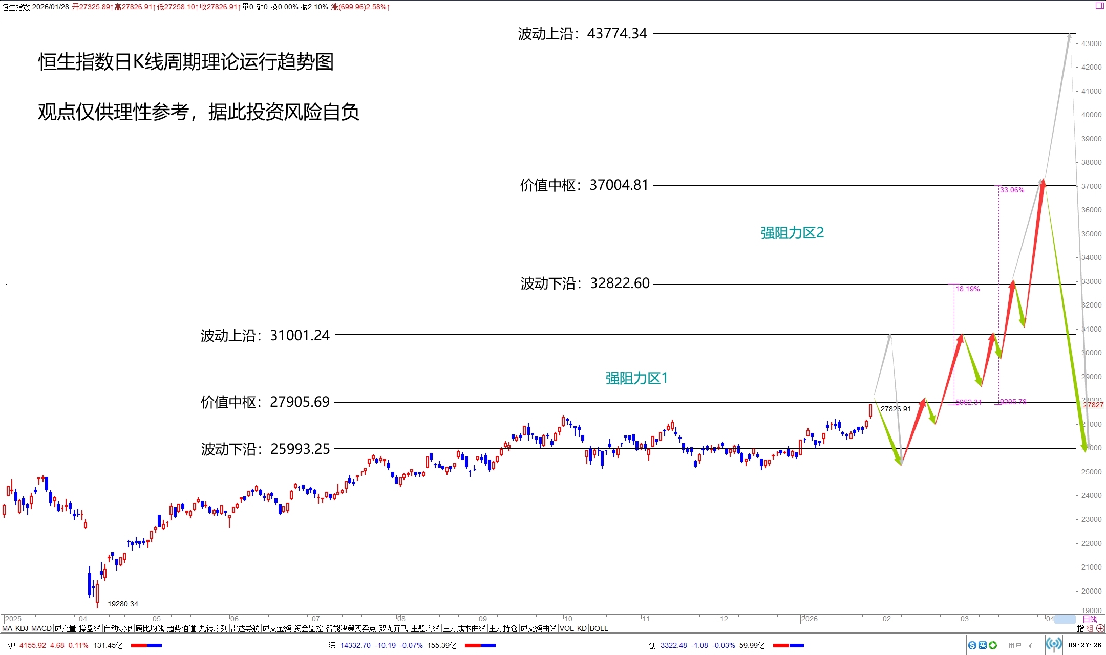 以“恒生指数”为参考标的的港股市场已经触及到了阶段目标区域“价值中枢”的位置了。