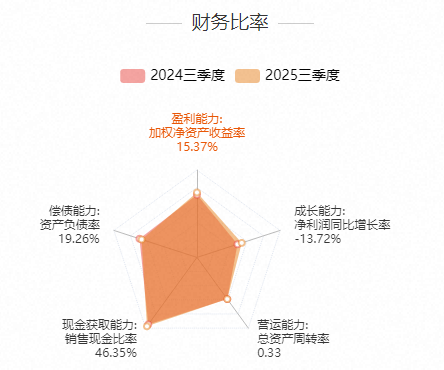 归母净利润215.11亿元,同比下降13.72%。分季度看,第三季度营收与利润均延续下滑趋势,反映行业整体去库存压力。 不过,公司现金流保持稳健,经营活动现金流净额达282.47亿元,同比仅下降5.19%。资产结构方面,货币资金较上年末增长6.99%,应收款项融资大幅减少82.91%,资产质量优化。值得关注的是,五粮液持续强化股东回报,2025年中期分红方案以总股本38.82亿股为基数,每10股派现25.78元(含税),合计分红100.07亿元。近五年累计分红超768亿元,分红率位居行业前列。