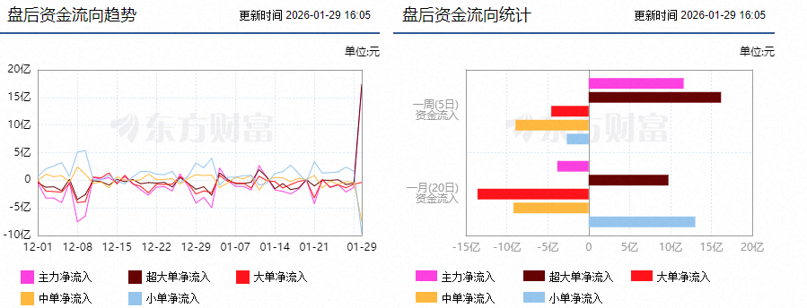 主力动向:1月29日主力净流入17.03亿元,净占比16.29%,结束此前连续3日净流出态势;