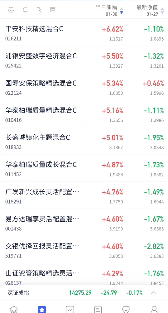 今天科技大反弹。平安科技精选估值6.6%,涨幅很高。$平安中证卫星产业指数C$