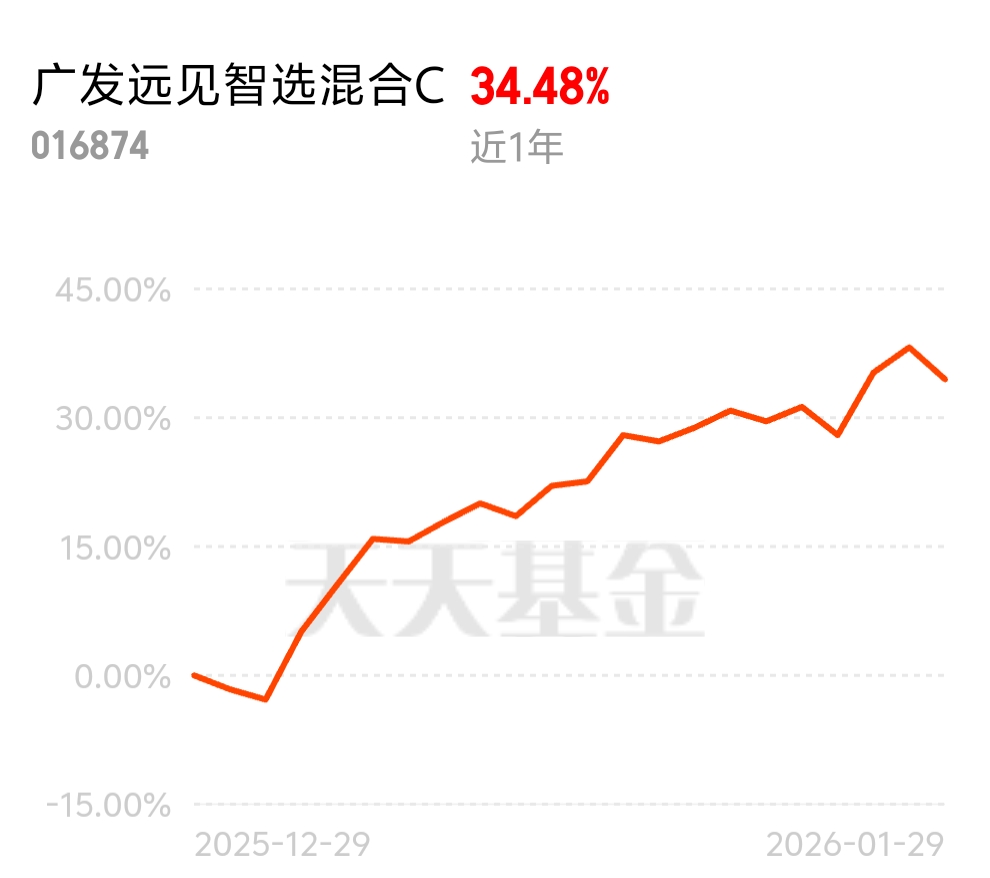 广发远见智选回调你们加仓没,看看它近一个月30%+的涨幅,短期获利盘吐一吐也正常