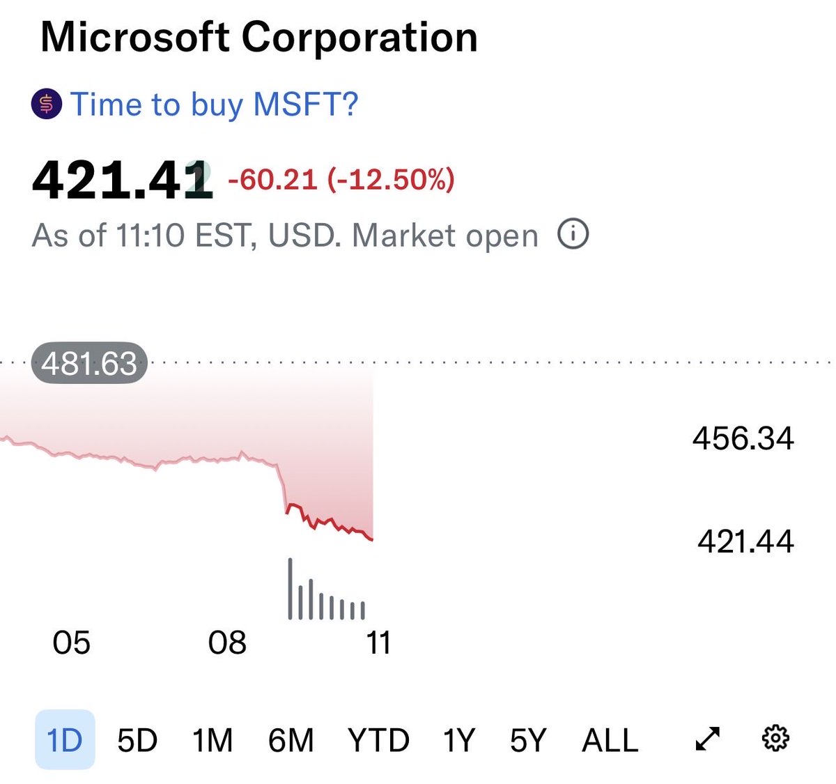 微软市值预计将蒸发3580亿美元,这将是其史上最大单日市值损失。上一次微软在财报发布后出现类似跌幅是在2013年7月,当时股价下跌11.4%。