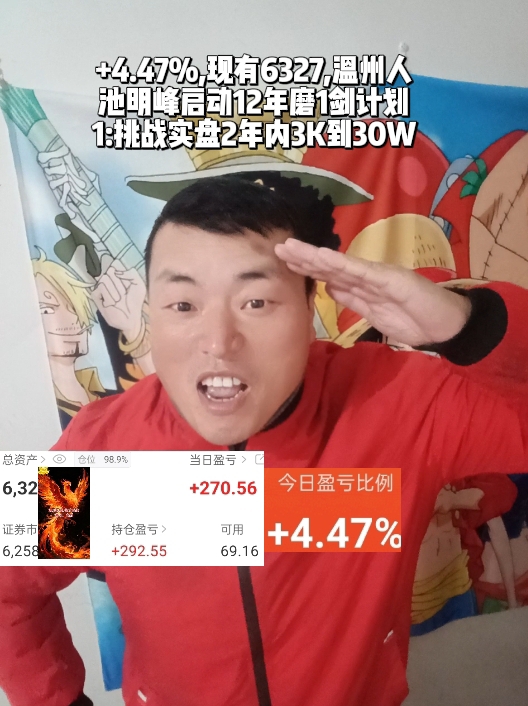 +4.47%,现有6327,温州人池明峰启动12年磨1剑计划,1:挑战实盘2年内