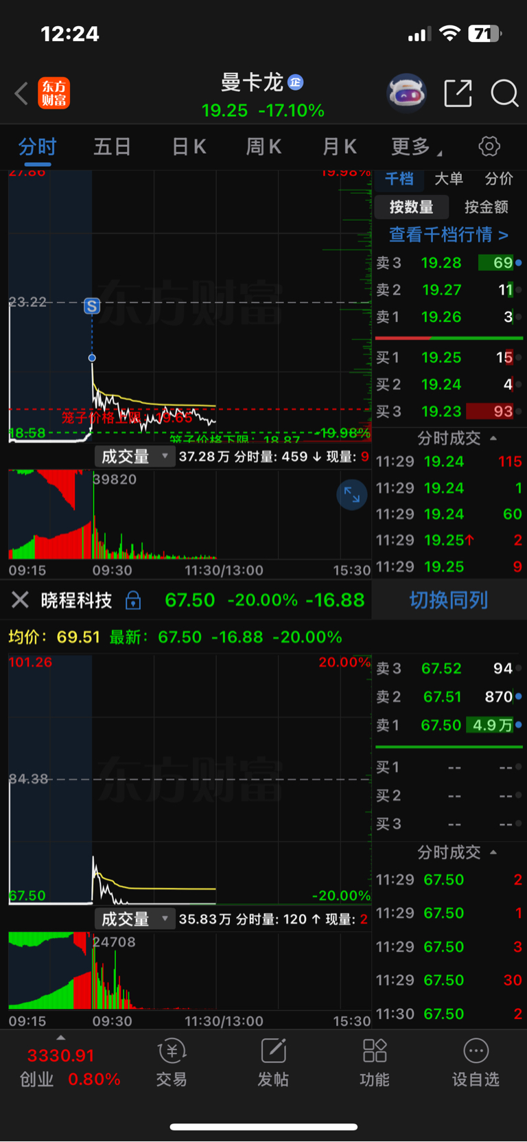 昨天79.7卖了还有点后悔昵下午拉到84块多那句话怎么说的尾盘拉升非奸即盗果然晚上黄金大跳水央妈监管今天直接核按钮害我200股曼卡龙亏10个点竞价割了!差点跑不了了