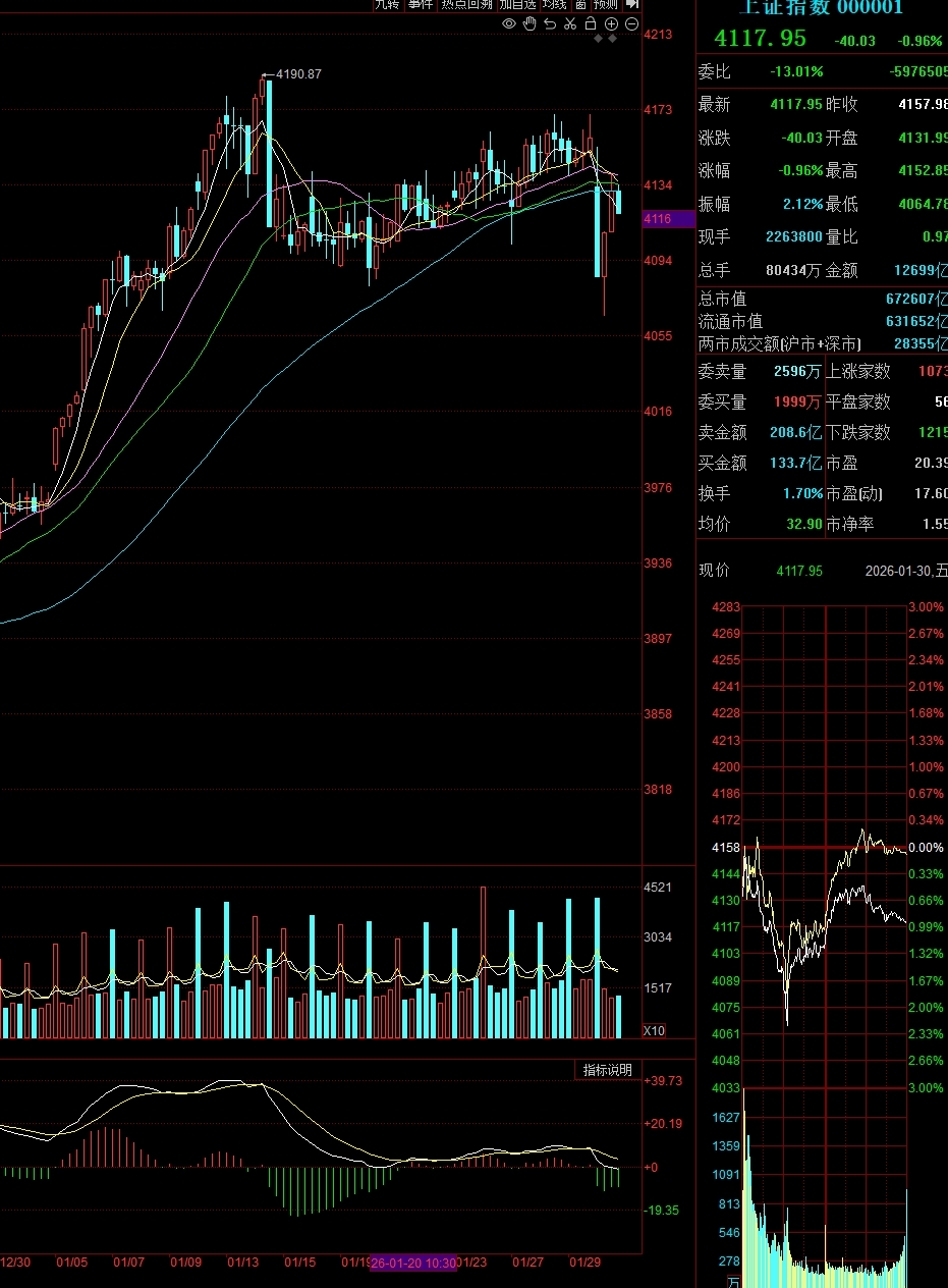 尾盘的回落有点中继下跌的意思,难道下周才是下跌加速的开始。如果按这个思路,今天早上的下跌可能仅仅是前菜,接下来回到4000以下去一趟的可能性很大。