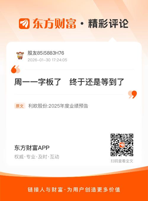 周一一字板了 终于还是等到了 我在《利欧股份:2025年度业绩预告》的评论获得了大家的关注。