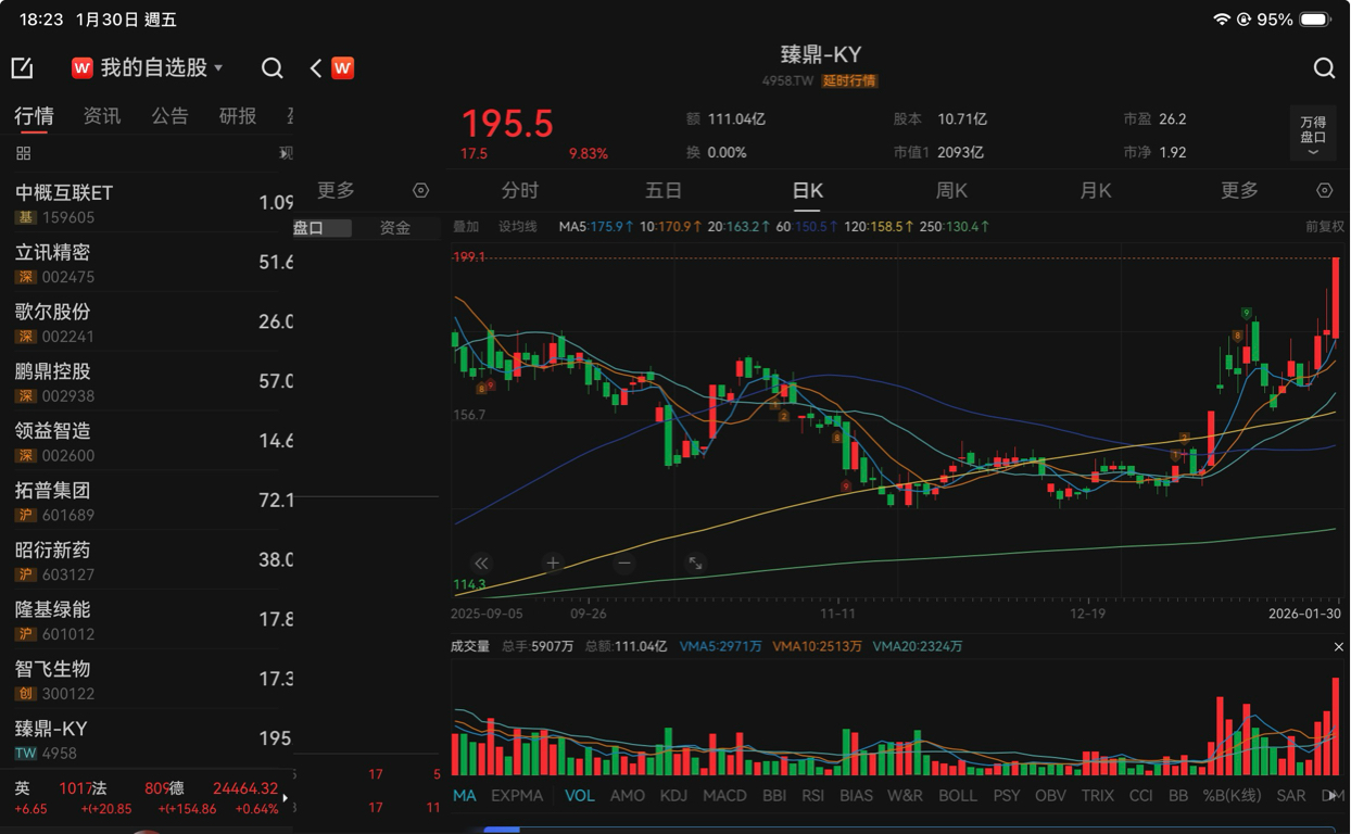 鹏鼎控股的母公司,臻鼎涨了不少。这 A股是真让人看不懂