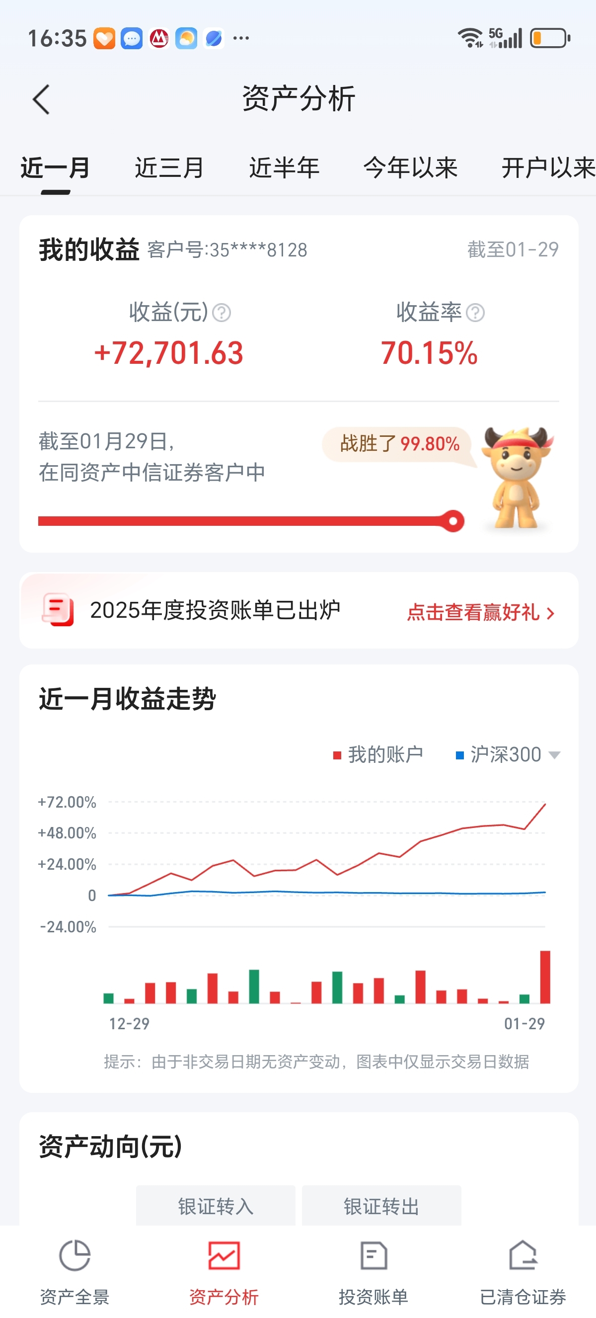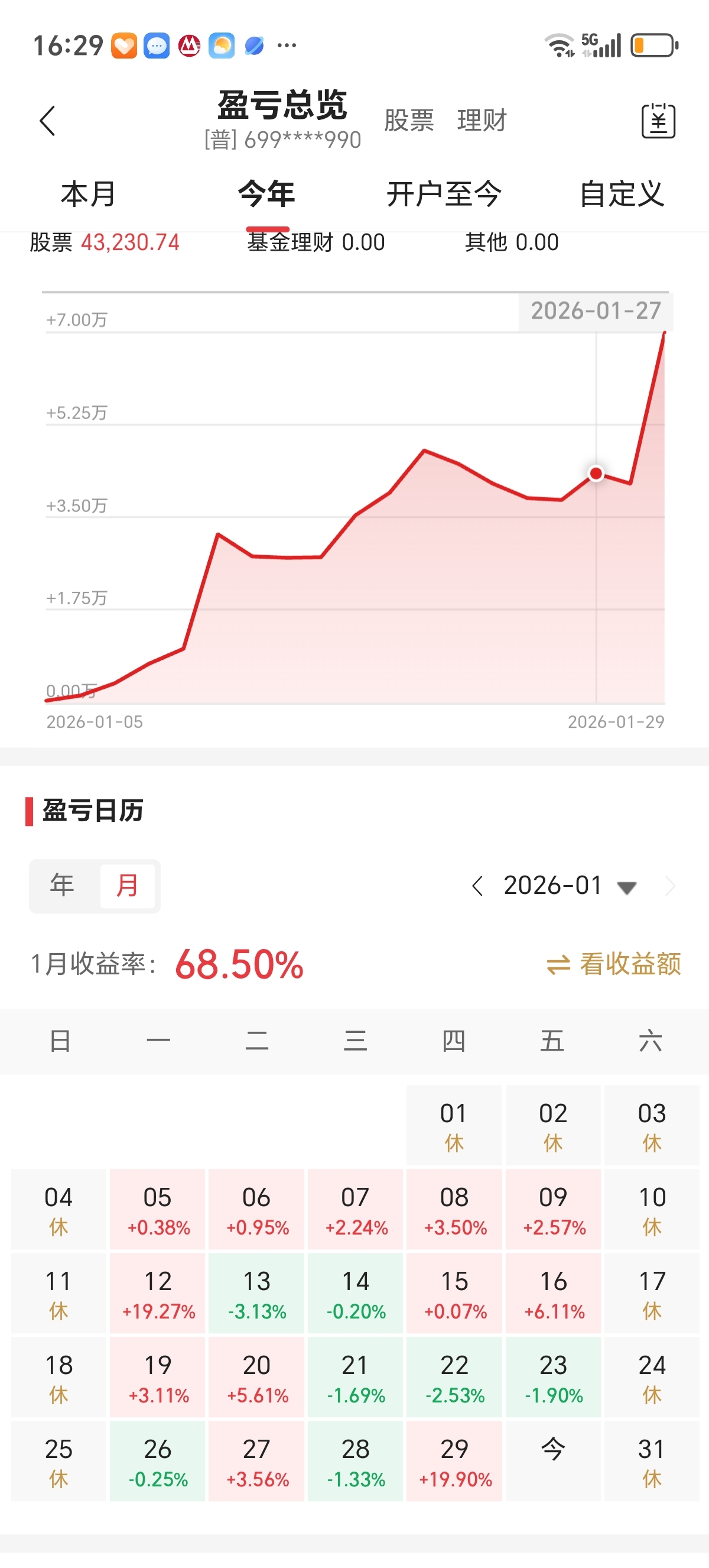 自己都完全没想到,这个月会有这么好的运气,改变交易模式后改变真的太大了,自己就是个小小散户,继续努力,也祝愿大家26年都赚大钱