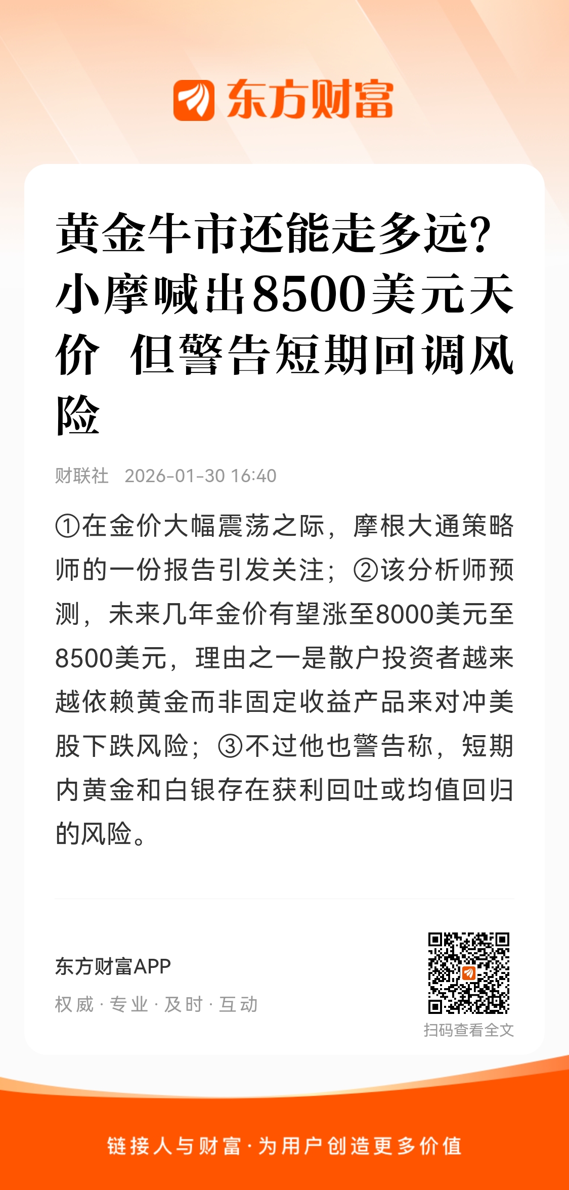 该分析师预测,未来几年金价有望涨至8000美元至8500美元,理由之一是散户投资者越来越依赖黄金而非固定收益产品来对冲美股下跌风险。