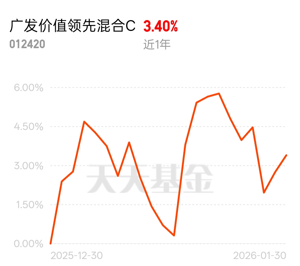 #白银一度跌超8% 贵金属巨震是何信号?,白银一度跌超8% 贵金属巨震是何信号?# 广发价值领先C今天又涨了0.63%,走势趋于平稳。其实春运旅客量创新高的预期早就摆在那了,之前的调整更多是市场情绪的波动。目前这只基金持仓的民航业的PB估值依然处于历史低位,经理这种逆向布局的思路,拿的就是这份安全边际。只要基本面逻辑没变,这种回踩后的连涨反而让人更踏实,继续看好后续的盈利修复。$广发价值领先混合C$