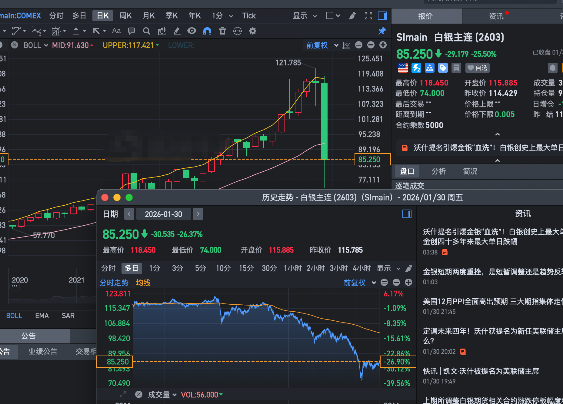 今天晚上血洗贵金属市场啊,不管是做白银的还是做黄金的,今天晚上都见证历史了,黄金和白银经过这一段时间的暴涨之后,终于迎来了暴跌,而且是少有的巨幅暴跌,白银盘中跌幅一度达到35%,黄金一路跌幅达到12%,而引发这场暴跌的,是深夜特朗普又释放了一个重磅利空!