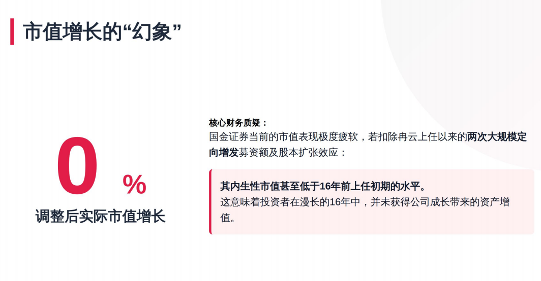 市值表现:扣除其任期内进行的两次大规模增发(融资额)后,公司当前的实际市场估值尚未恢复到其上任初期的水平。