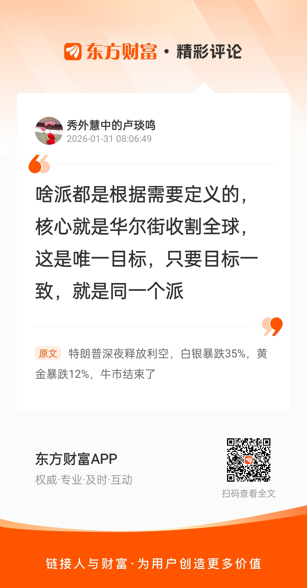 这直接扭转了市场的预期。美元暴涨,黄金白银暴跌!