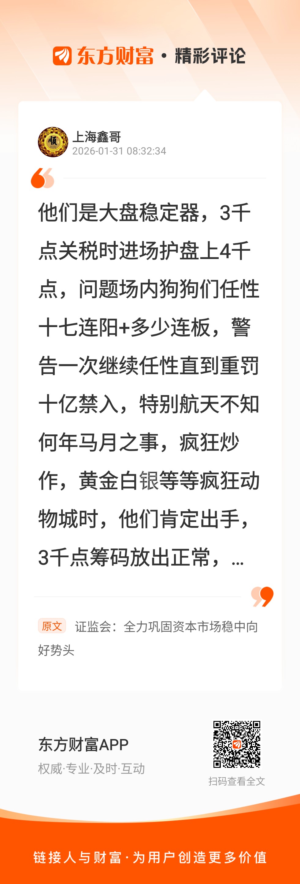 1月30日,证监会党委书记、主席吴清召开座谈会,与部分境内外上市公司代表深入交流,充分听取意见建议。吴清表示,上市公司是资本市场之基,要专注主业、完善治理,努力提升发展质量,增强回报投资者能力,为资本市场高质量发展提供坚实支撑。