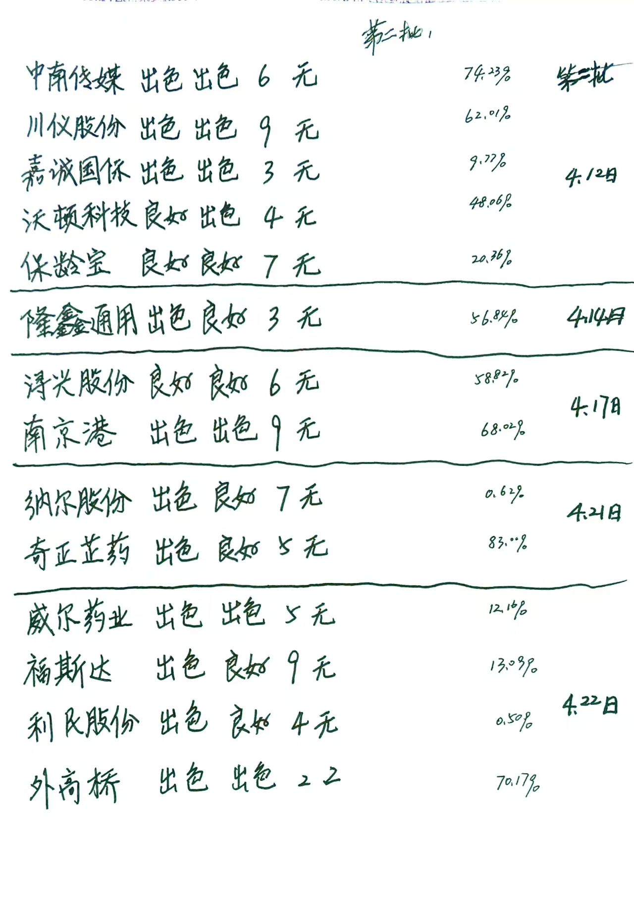 我会分批晒出从去年3月开始收集的400只潜力股。如今时移世易,这些信息已失去时效性,失去了参考价值,仅作为我过往工作的记录留存。同时,也借此说明我为何能有耐心、信心与恒心做到“学会空仓,耐心等待,逢低跟进,杜绝追涨杀跌”。