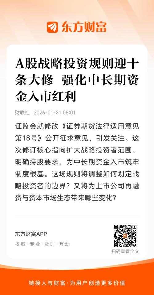 证监会就修改《证券期货法律适用意见第18号》公开征求意见,引发关注。这次修订核心指向扩大战略投资者范围、明确持股要求,为中长期资金入市筑牢制度根基。这场规则将调整如何划定战略投资者的边界?又将为上市公司再融资与资本市场生态带来哪些变化?