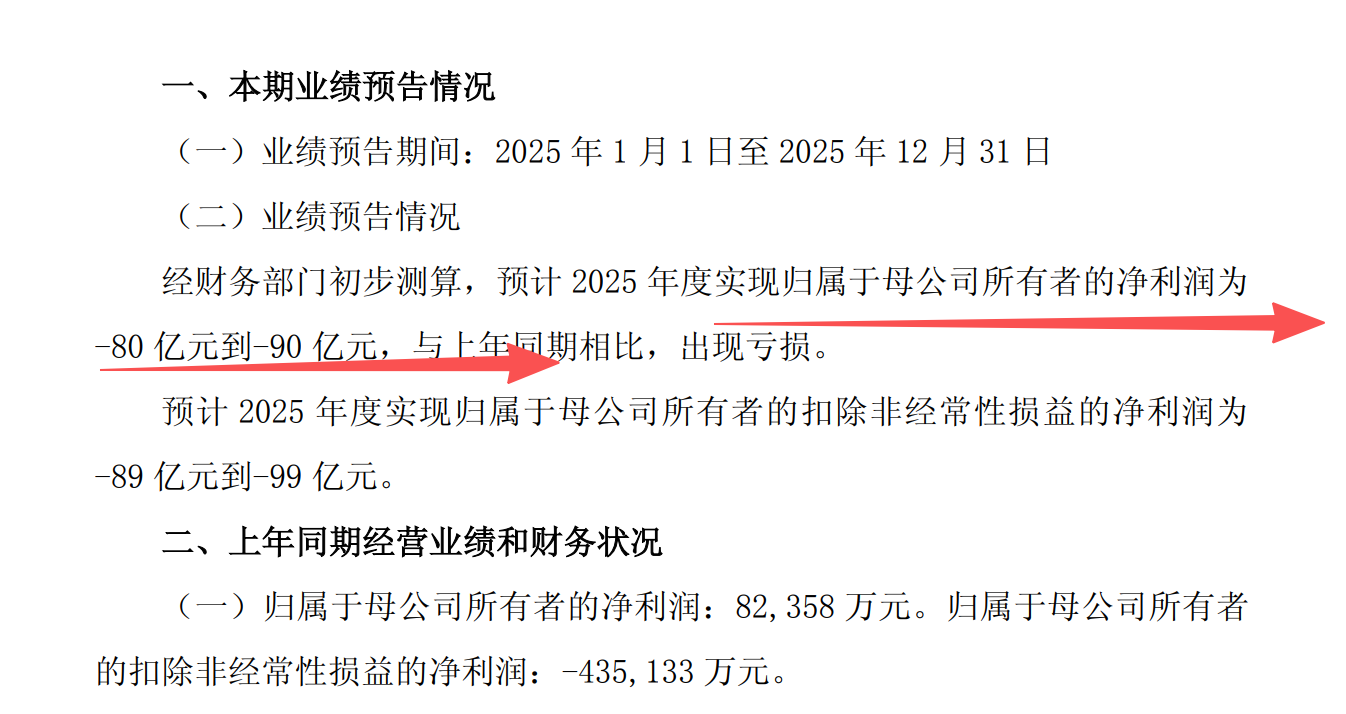 广汽集团,2025年公司亏损了80亿到90亿元。