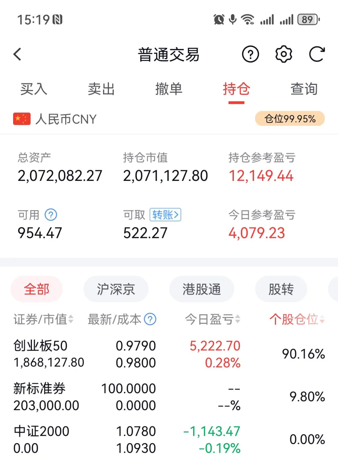 当前实盘持仓