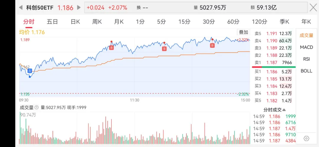 下跌减仓,上涨加仓,今天在科创50上完美展现。