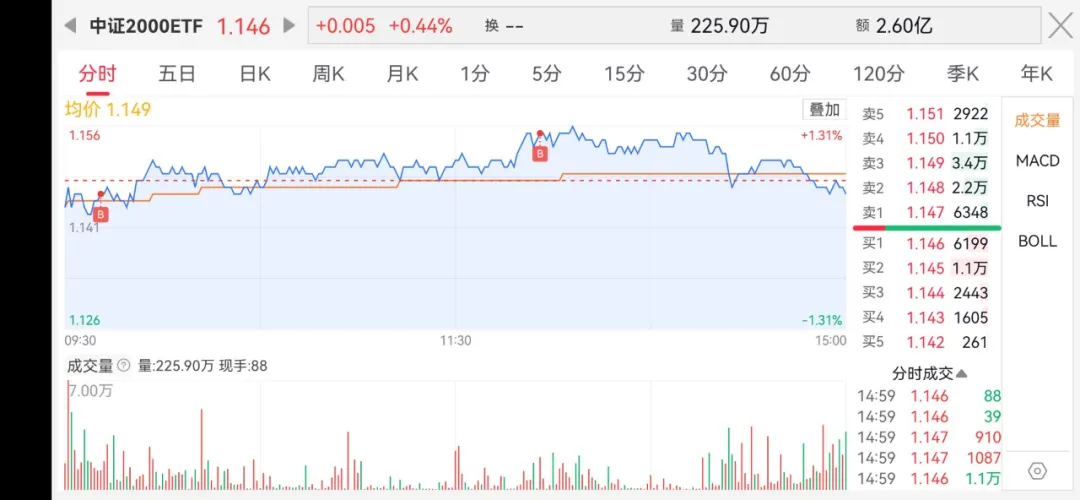 首先,我们从众多宽基ETF中找到快马。最近两天的快马,无疑是代表小盘股的中证2000。所以昨天和今天,百万实盘买的都是中证2000ETF。根据动量强度来选标的,哪个强就买哪个,不加入个人主观判断。