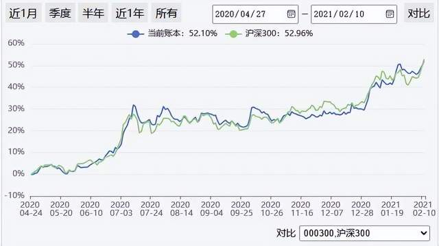 这一阶段正是牛市,整体行情较好。沪深300上涨52.96%,百万实盘盈利52.1%,略微跑输沪深300指数,算是跟上了大涨。