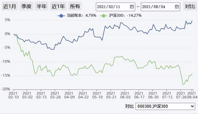 2021年春节后,市场大幅下跌,但是下跌之后创业板反弹比较快,并且持续上涨。动量轮动的好处就是,只要有一个品种上涨,只要有一匹快马,就有机会抓住。这一阶段更多交易的是创业板,沪深300指数下跌14.27%,百万实盘仍然盈利4.79%。