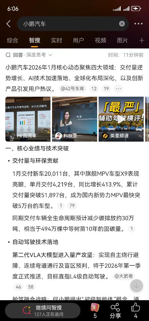 小鹏汽车2026年1月共交付新车20,011台。