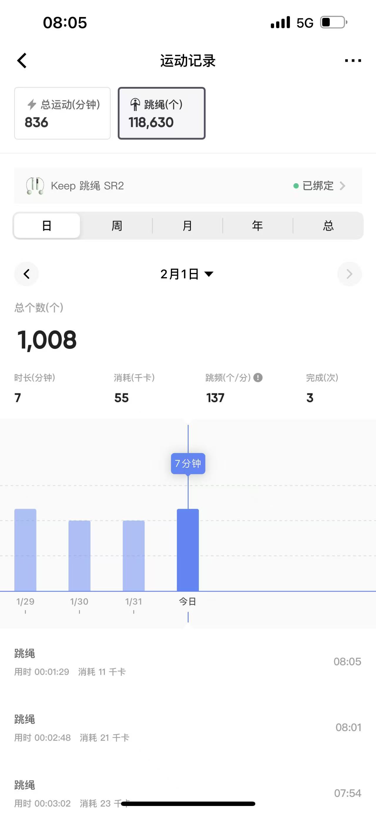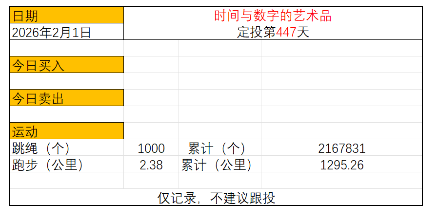运动与投资第447天2026年2月1日今日定投:周末没有定投跳绳:1000个,累