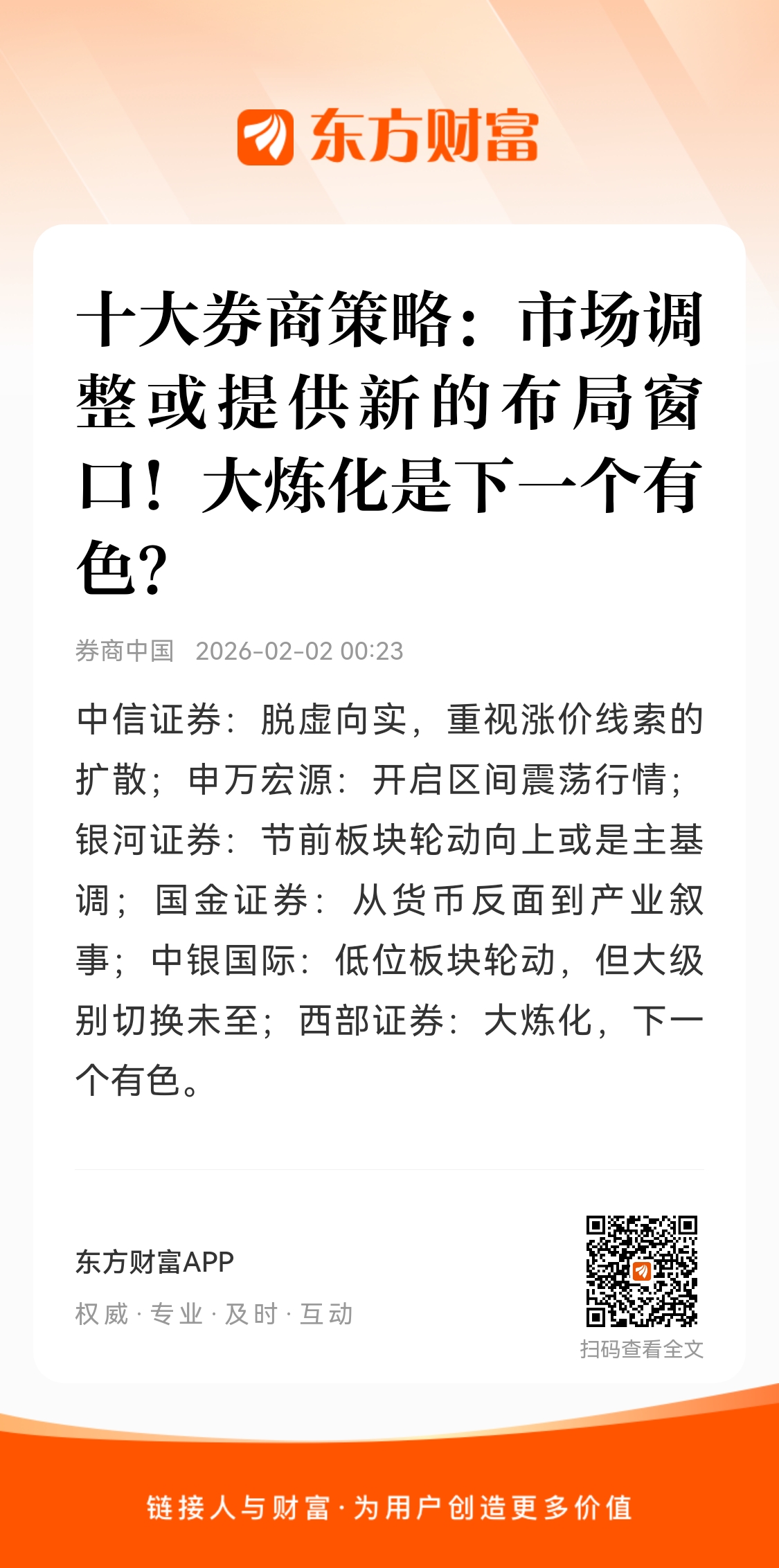 配置的底层思路还是应围绕中国具备竞争优势的行业在全球定价权的重估,化工、有色、电力设备、新能源的底仓配置思路依然成立,但对投机属性越发明显的贵金属板块要开始保持警惕。消费和地产链的躁动修复理应发生在春季,这与制造、科技并不对立。