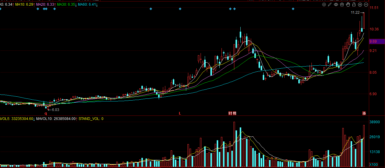 太极实业600667:封测业务受益于半导体行业复苏,太极实业上周五的表现还是比较强的,现在股价也是创了阶段性的高点,成交量也是比较配合,说明市场中的做多意愿较强,上方抛压比较小,周一如果能够小幅的高开市场中有接力还是有望继续来中阳线的。现在突破了上方10快的压力位,周一关注他的量能,能够放量还是有望站上12的。从周末的年报来看,同时公司年度股东大会已审议通过回购方案,拟回购股份用于市值管理,二月份还是值得研究的。