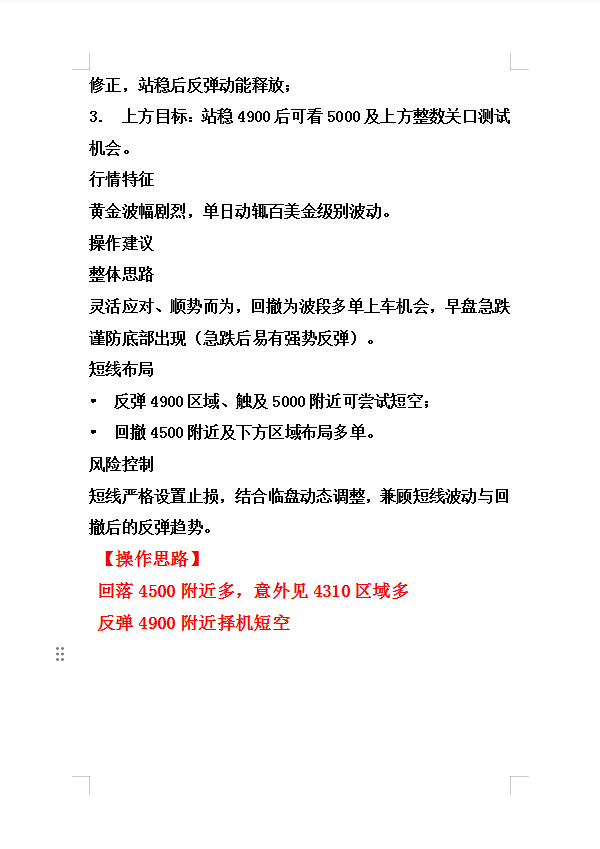 目前黄金波幅剧烈,单日动辄百美金级别波动,操作上灵活应对,顺势而为。早盘急跌注意