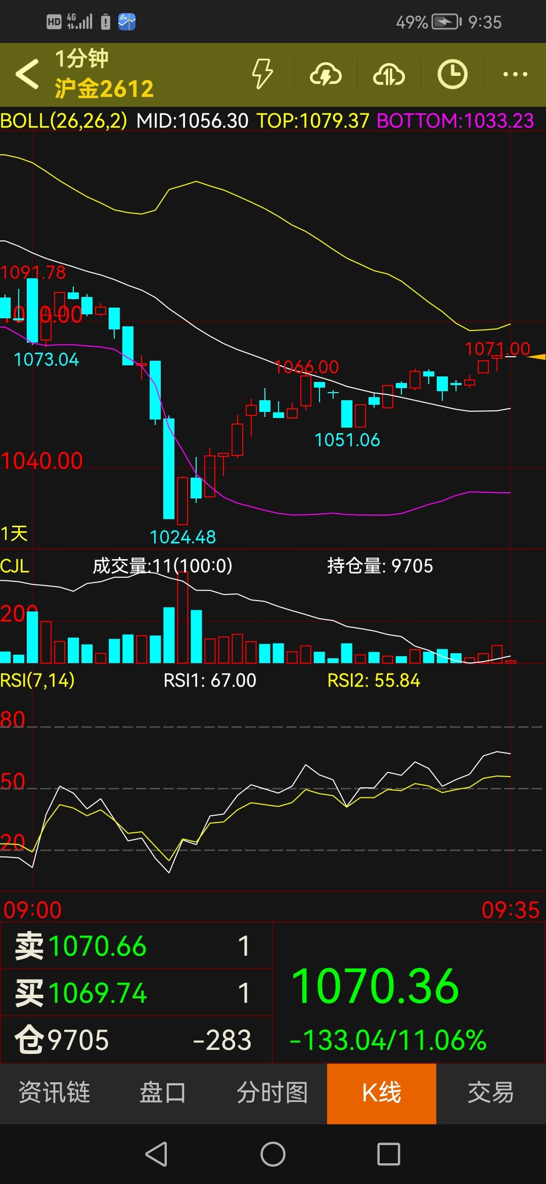 还没来得及细想这其中的幸运,黄金价格已如弹簧般迅速回弹至1070。一跌一升之间,三百万盈利的回撤被悄然抹去,仿佛从未存在过。指尖微颤,不是恐惧,而是后知后觉的震撼:若没有那1024的成交,若贪婪再多停留一刻,结局又将如何?