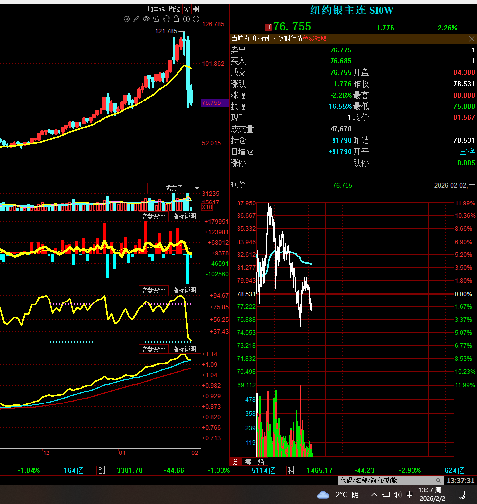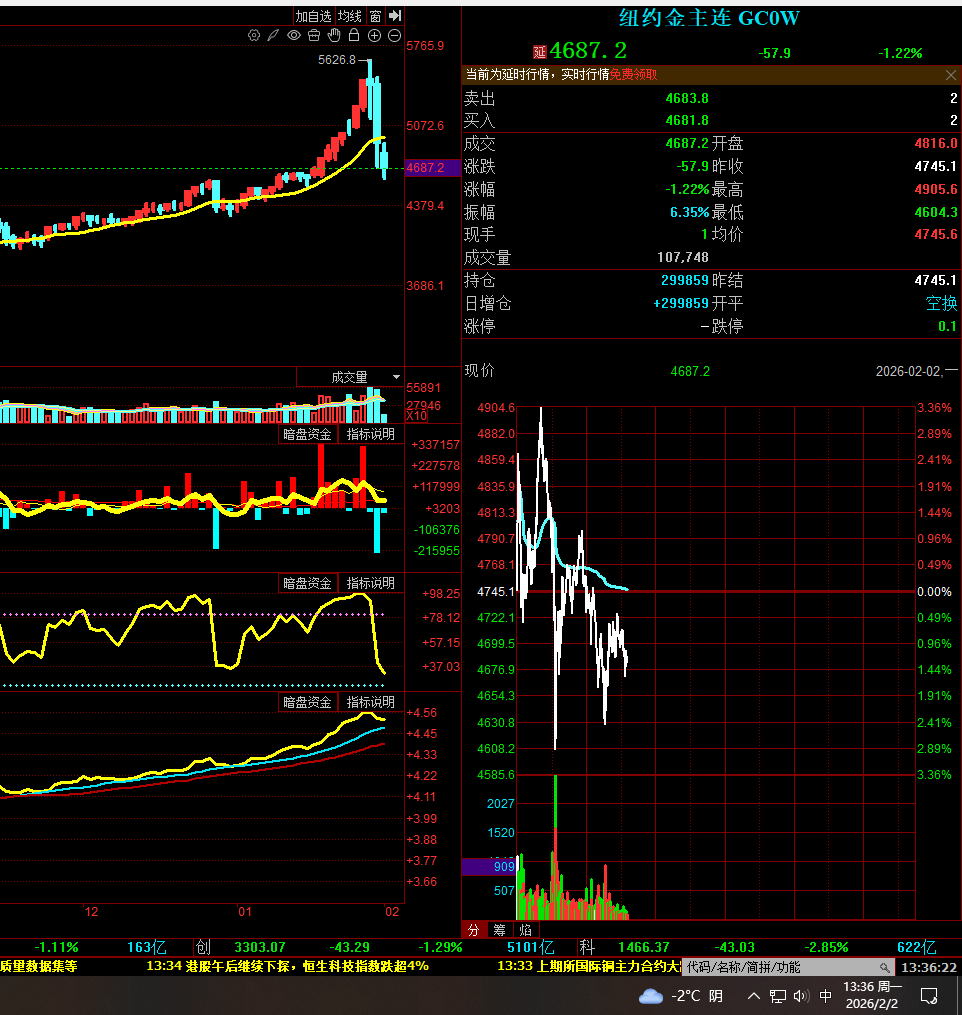 0202星期一 正在交易的美盘 金 银 铜 油 期货走势