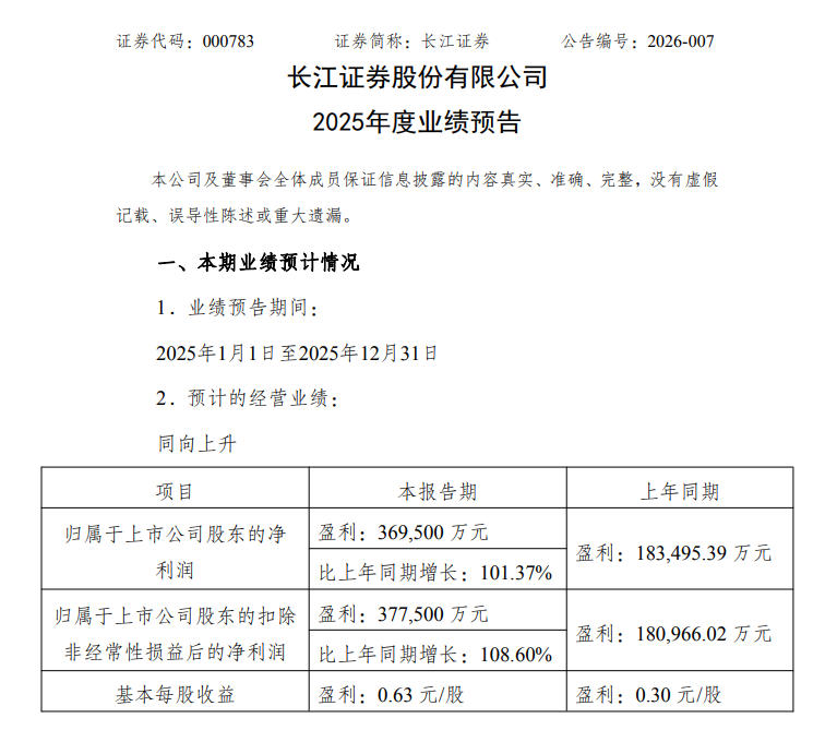 【长江证券:预计2025年归母净利润36.95亿元,同比增长101.37%】1月