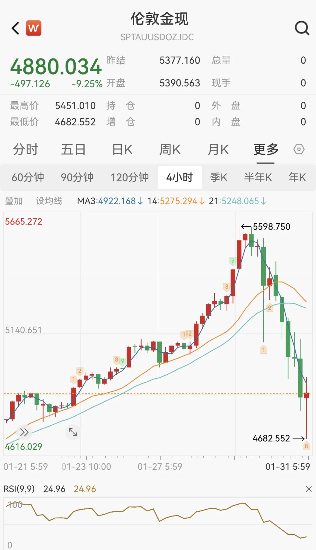伦敦银长长的阴线就像一把从天而降的利剑。在几天前,白银还是一天暴涨30%的“神话”,转眼间就变成了埋葬追高者的“墓碑”。