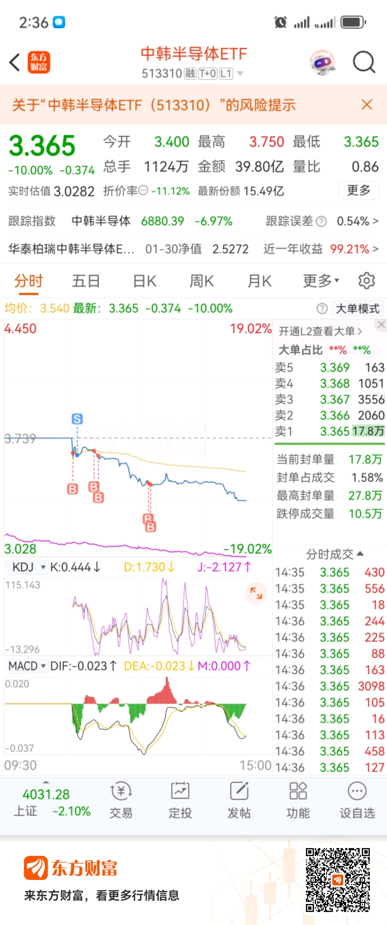 观察了许久的基金,才第一次尝试T+0踏入就挨跌停封板,火气起伏的有想砸手机了,踏