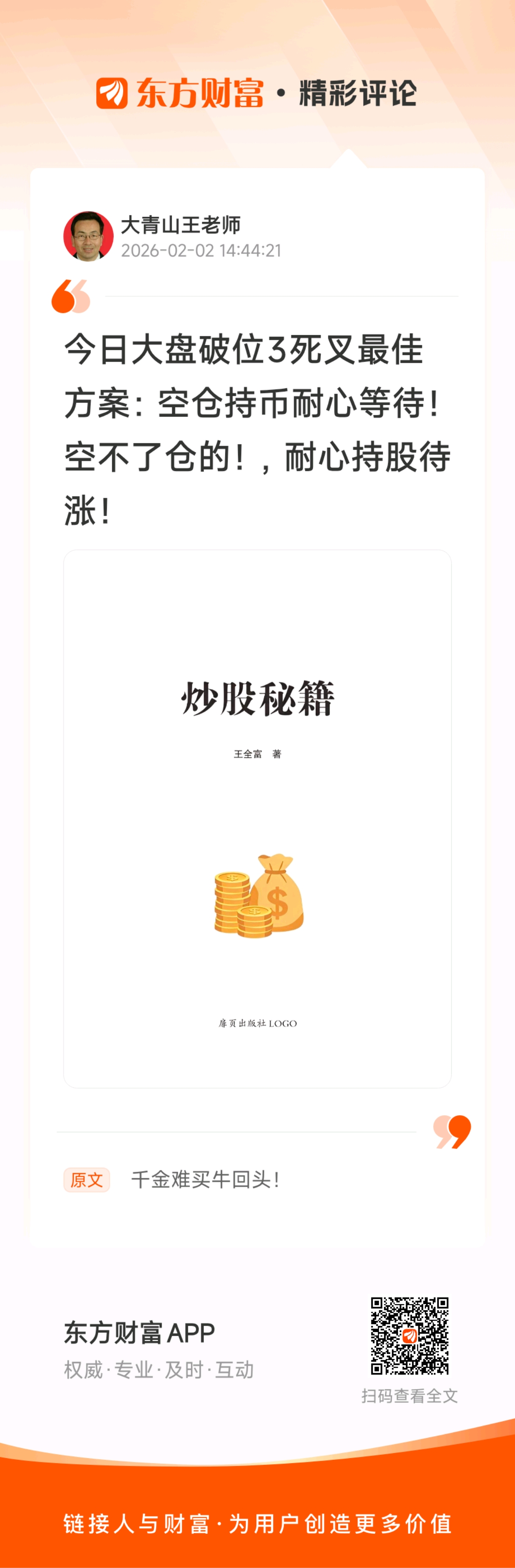 千金难买牛回头!