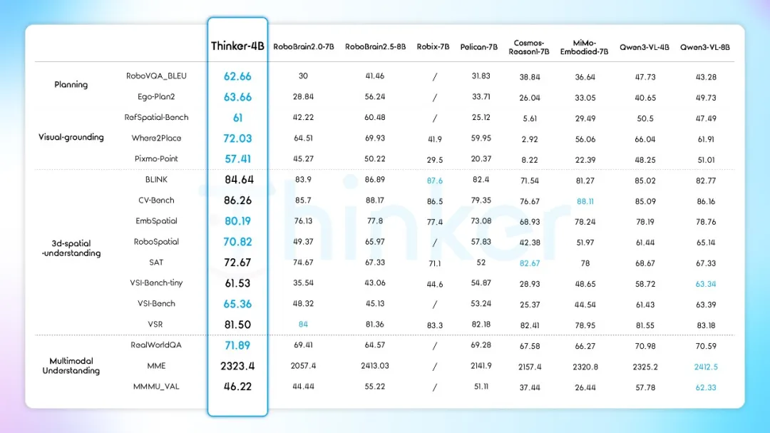 优必选宣布开源其自研的具身智能大模型Thinker1,主打小参数、高性能、全开源