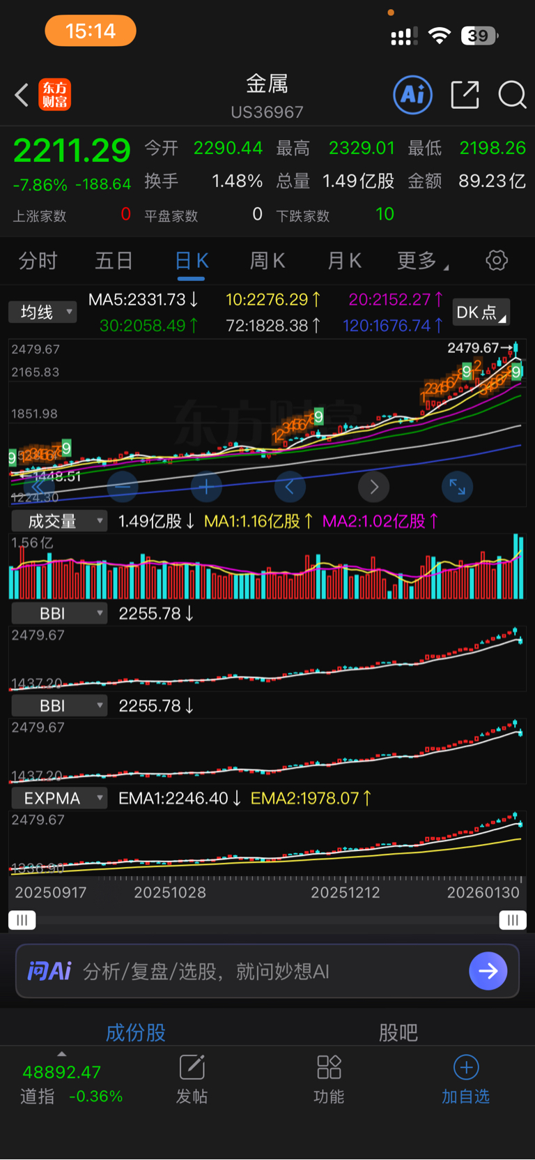 $有色金属板块(EFI|nffi)$ #收盘点评#