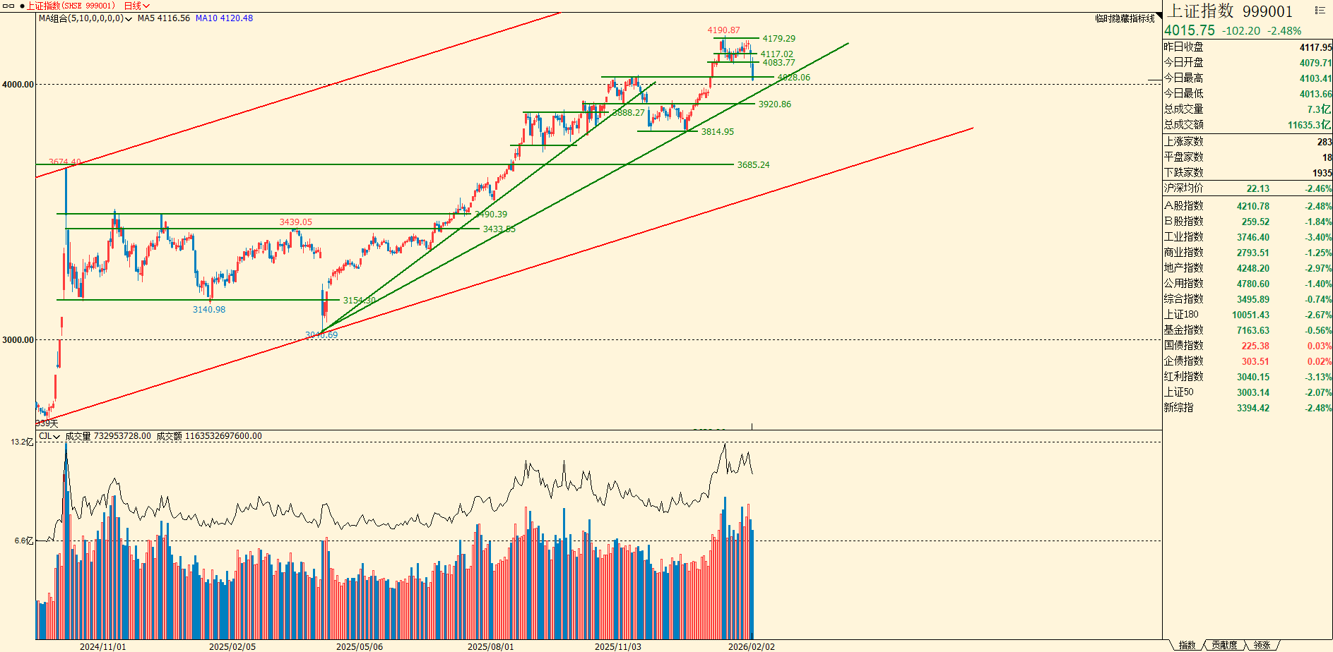 对于接下来的跟踪,首先要找到下方的支撑位。当前4028的位置,小幅破位,但是接下来还有关注当前的破位否有效。如果说此处不能守住,就在下方3920位置守着。