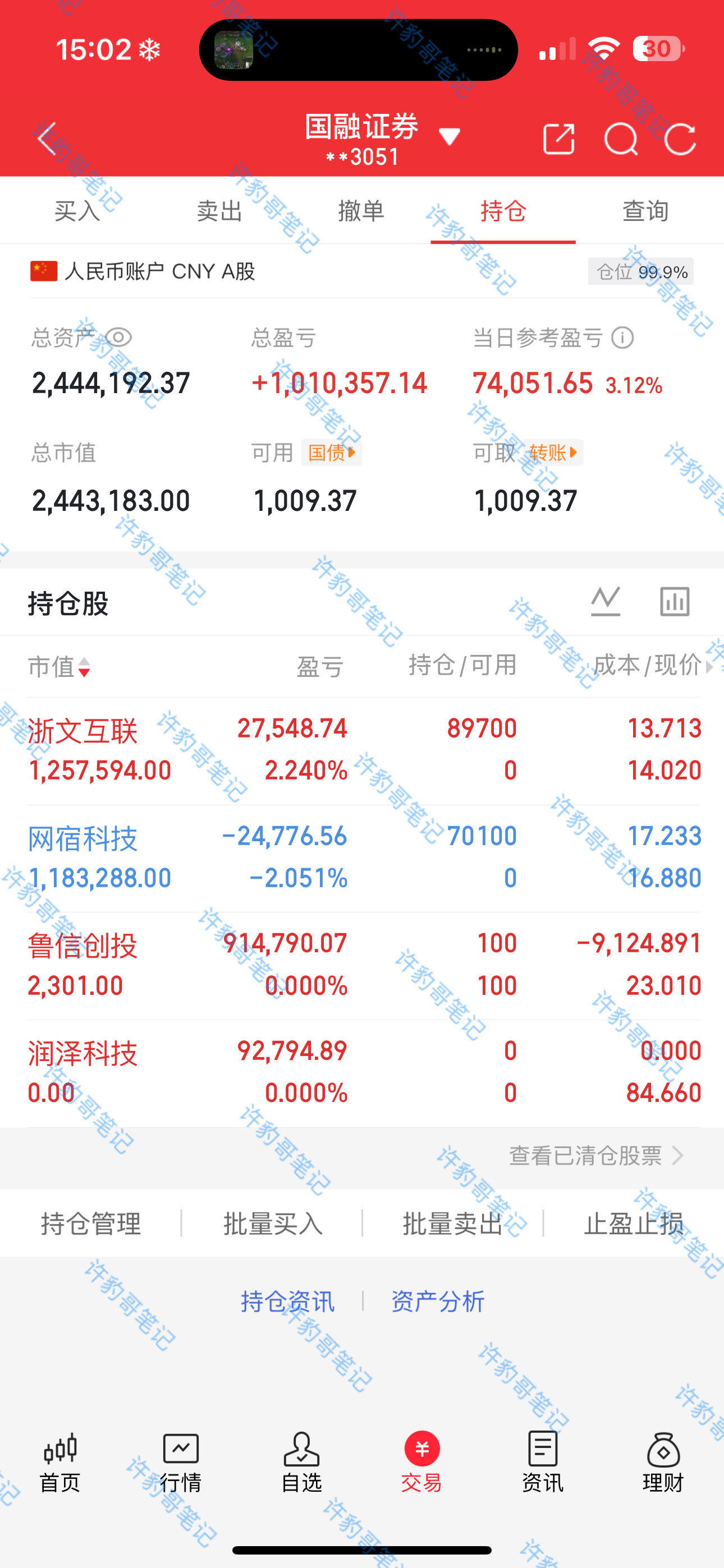 今天第一波升的时候,分批出掉润泽科技。出的位置不是非常的好,因为我要去进当时盘面更好的,网宿科技和浙文互联各进了半仓。临近中午的时候,浙文互联强势涨停,网宿科技也是大幅冲高。奈何午后,指数大跌,浙文互联也炸板了。网宿科技也回落了,下午网宿科技感觉也是一直在ya着出。不是很完美,但总体来说,今天指数大跌。不但今天没大亏,反而还是红的,就已经非常的满足了。