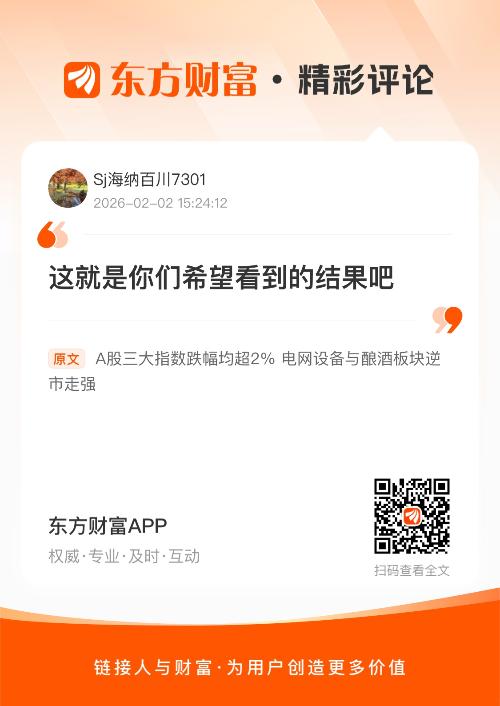 这就是你们希望看到的结果吧 我在《A股三大指数跌幅均超2% 电网设备与酿酒板块逆市走强》的评论获得了大家的关注。
