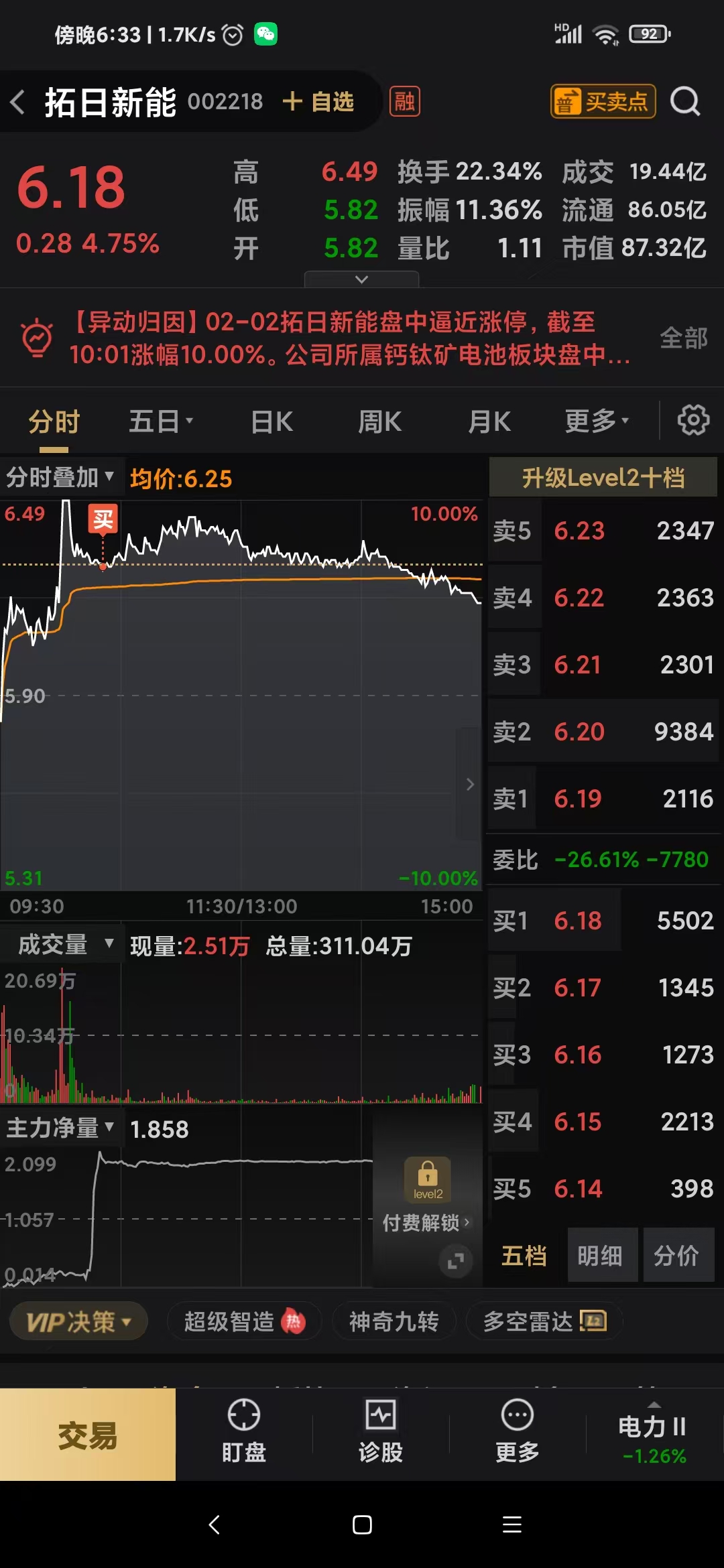 开个贴,方便自己将来复盘,今天上午卖出上周五买入的红宝丽,有点盈利,然后买入002218拓日新能想回封涨停,结果收盘亏损差不多2点,看来明天要跑了。